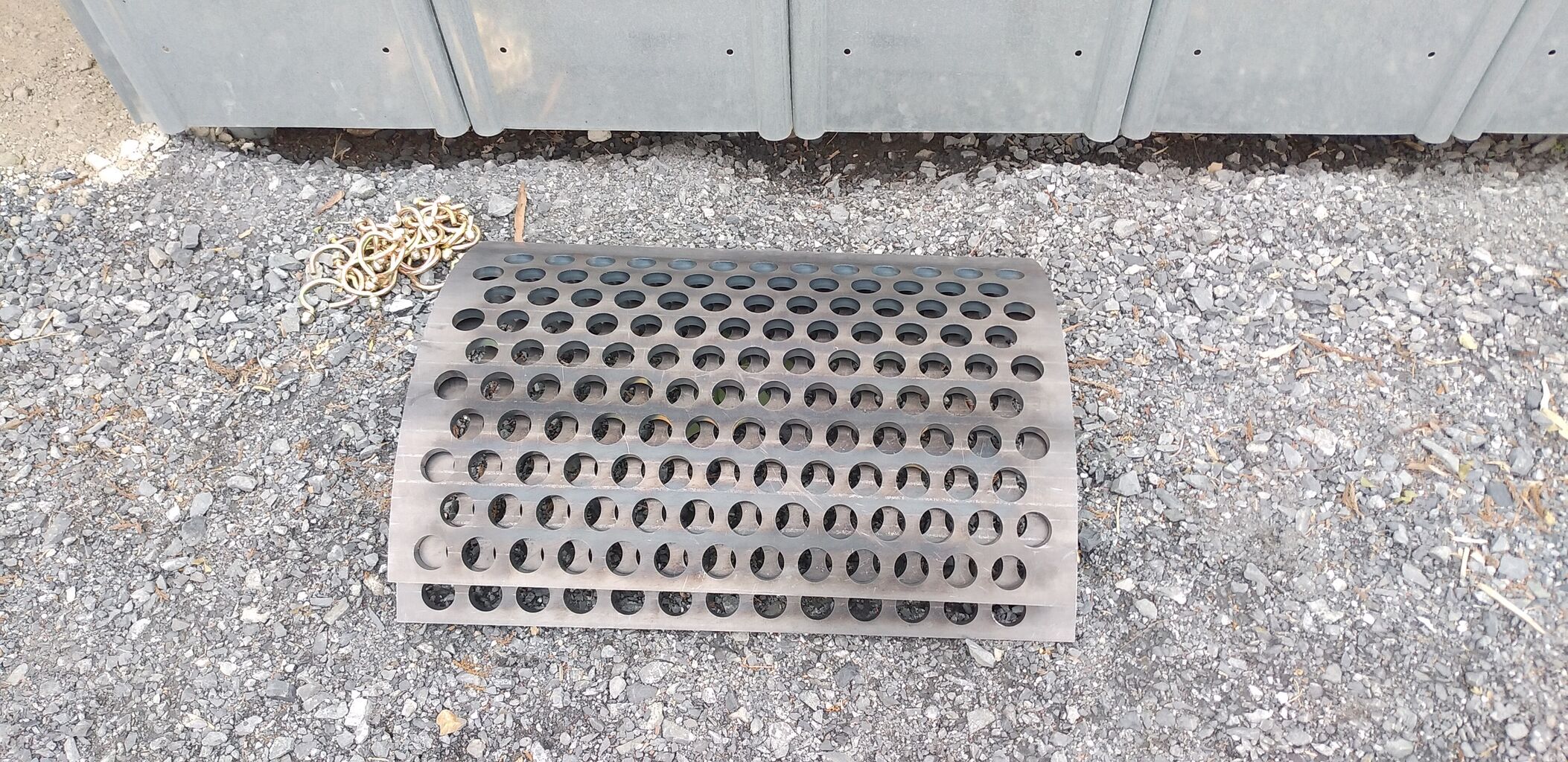 2020年05月25日 新しいスクリーン 破砕機の新しいスクリーン(フィルターみたいなもの)を装着これで破砕された破片が小さく、出やすくなった!2枚目が新しいスクリーンででたもの3枚目が前の破砕された破片です。